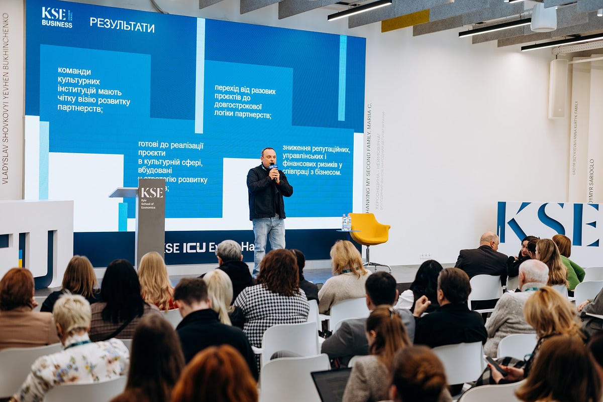 Часто вважають, що стратегія й культура неминуче конфліктують. Наше завдання — посадити їх за один стіл в рамках освітньої програми “Лідерство та побудова партнерств для культурних інституцій”. Саме на перетині управлінської логіки й культурних сенсів народжуються нові, поважні й стійкі моделі співпраці. — Михайло Колісник, академічний директор освітньї програми “Лідерство та побудова партнерств для культурних інституцій», професор фінансів KSE Graduate Business School